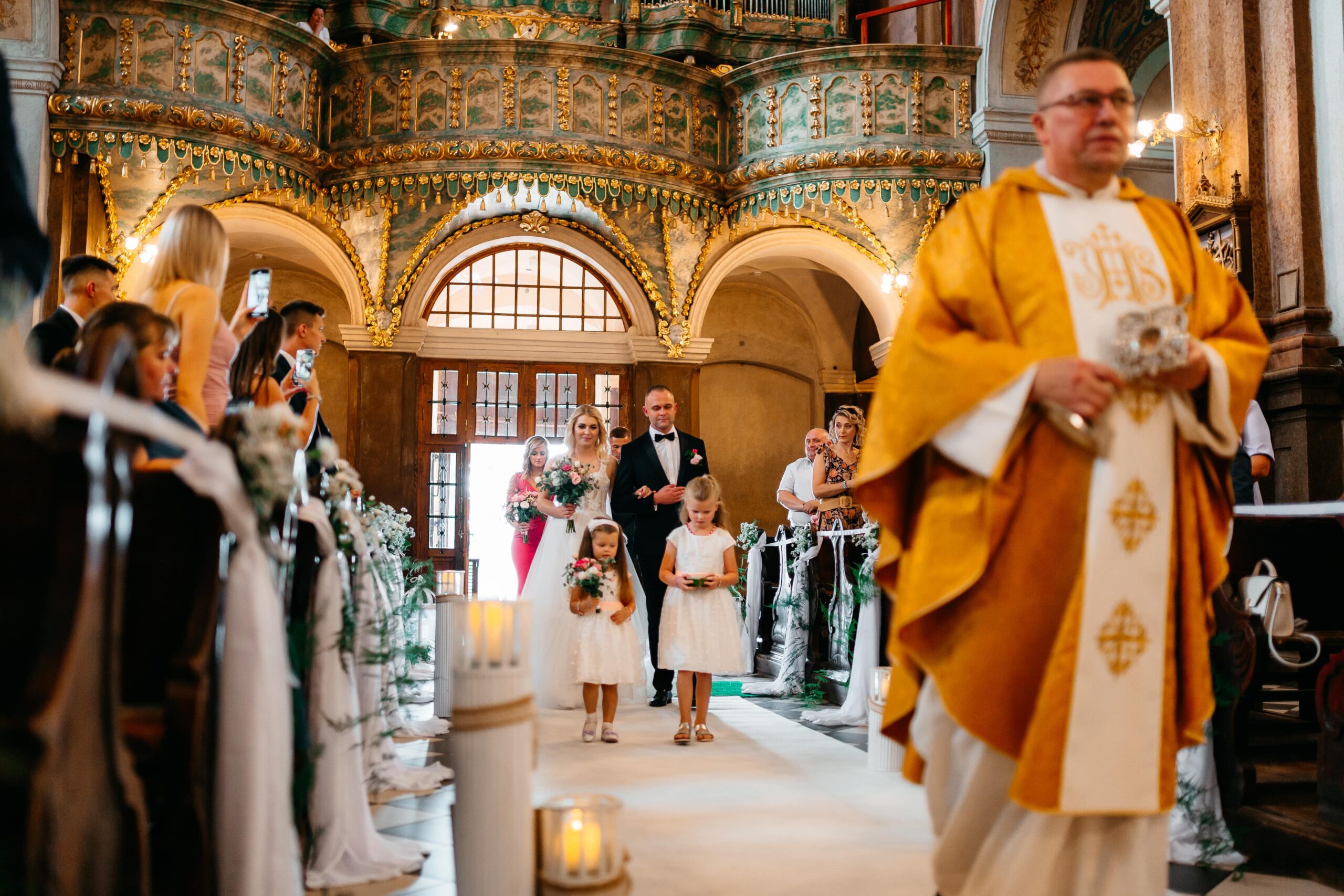Po wymianie przysiąg, przy dźwiękach organów, Angelika i Mariusz opuścili kościół jako mąż i żona, witani radosnym deszczem konfetti i uśmiechami bliskich. Wszyscy udali się do Zajazdu Lwowskiego w Klwowie, gdzie rozpoczęła się część weselna.
