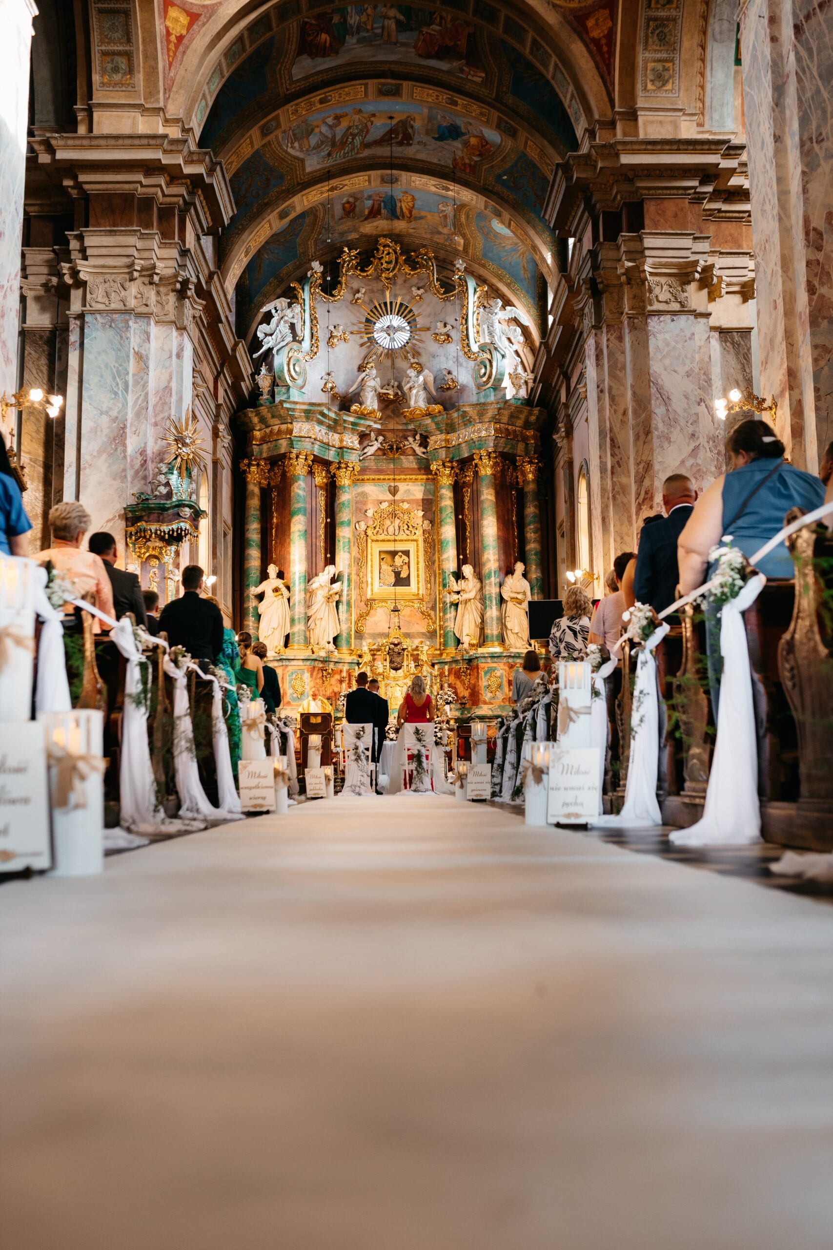 Angelika i Mariusz marzyli o tym dniu, odkąd się poznali, a ich wrześniowy ślub był spełnieniem tych marzeń. W ciepłe, jesienne popołudnie, pełne złotych promieni słońca, spotkali się w malowniczej Studziannie, gdzie odbyła się ceremonia ślubna. Kościół, otoczony starymi drzewami, stworzył wyjątkowy klimat, a pięknie udekorowana na tę okazję świątynia emanowała ciepłem i intymnością.